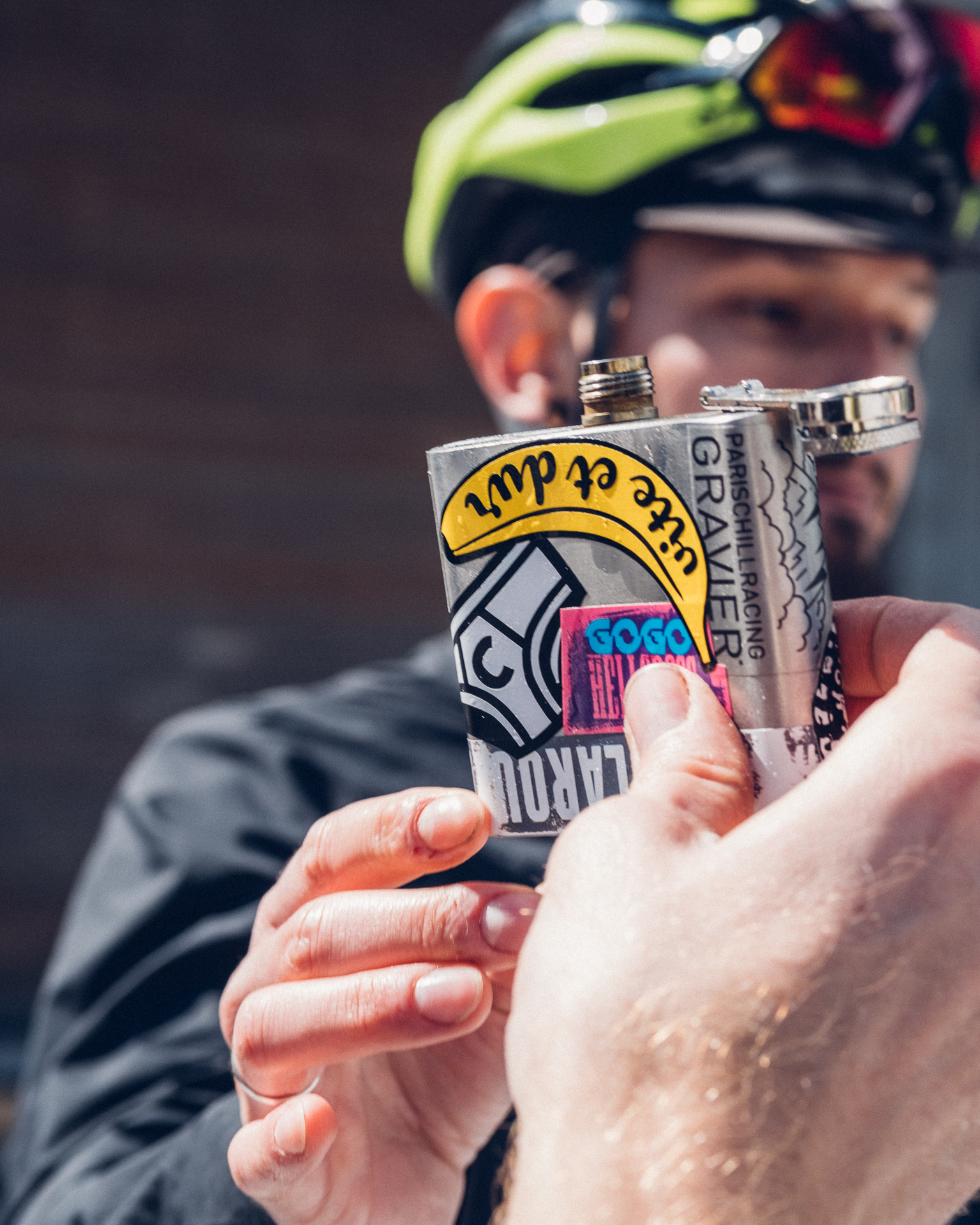 La fin du trip se fera en grande partie sur les bord de l’Ourthe. Une piste cyclable assez roulante, bien que chaotique à cause de nombreux travaux aux abords de Liège. Petit passage par la rue des graviers, pour poser une pierre. Dernière difficulté de la journée et dernière bosse pour regagner le parking où nous avons laissé les voitures 3 jours plus tôt.