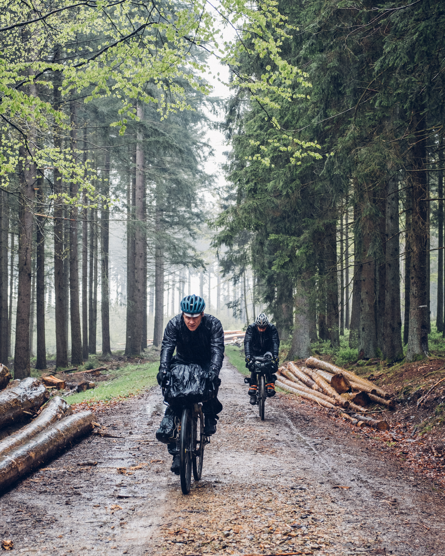 Il a fait froid, très froid cette nuit. On a flirté avec les 2°. Pour Mélanie, l’idée de refaire la même qu’hier ne passe pas. Avec Julien, ils décident de shorcuter l’itinéraire pour reprendre un peu de force. Nous entamons la journée par un bon bout de forêt, avec son lot d’arbres tombés sur le chemin. Le sol est très gras, et l’atmosphère particulièrement humide. À vrai dire, il va pleuvoir une bonne partie de la journée.