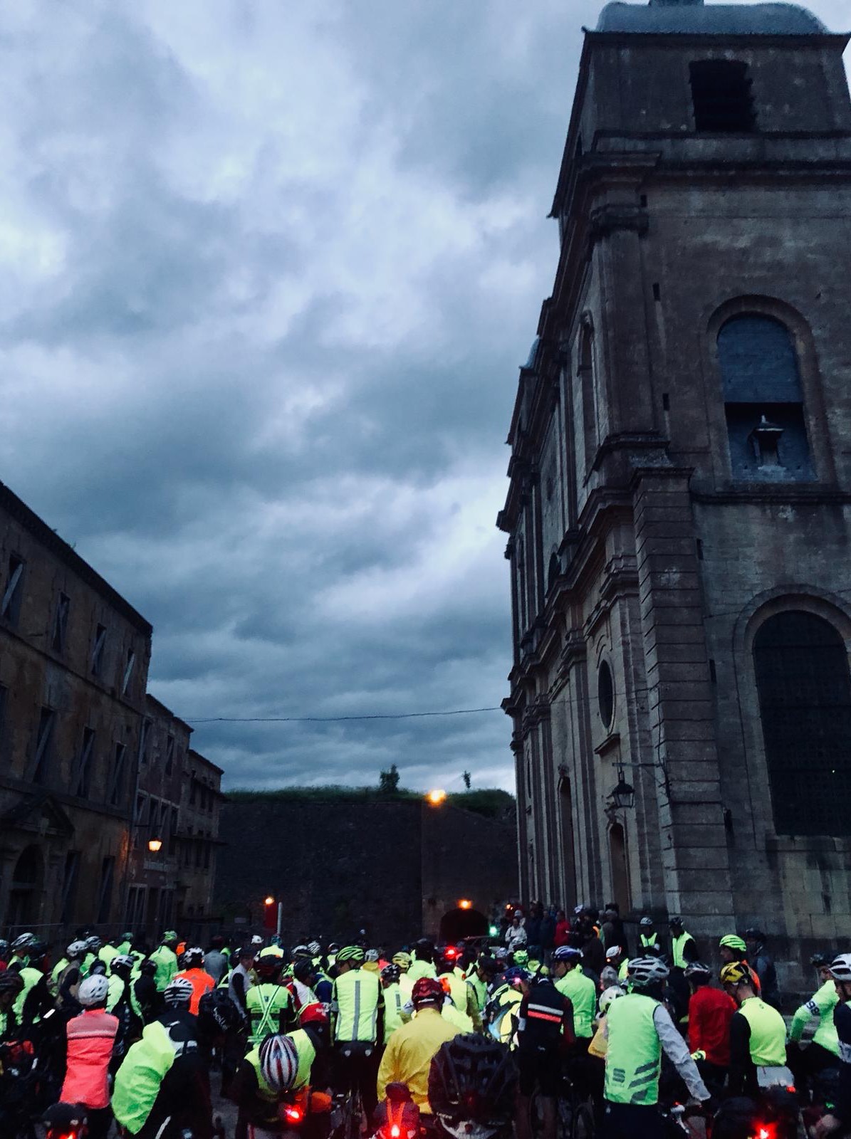 Tout démarre à la citadelle de Montmédy, il est presque 22h. Hommes, femmes et machines sont affûtés comme jamais et après plusieurs heures à attendre dans le froid et le vent, le départ de cette BTR s’apparente à une délivrance. Nous allons enfin pouvoir rouler, nous réchauffer et surtout mettre un point final à cette (trop) longue période de préparation. On a normalement pensé à tout et il n’y a plus qu’à rouler, 1200 kilomètres plus au sud vers Ramatuelle, en 120 heures maximum.