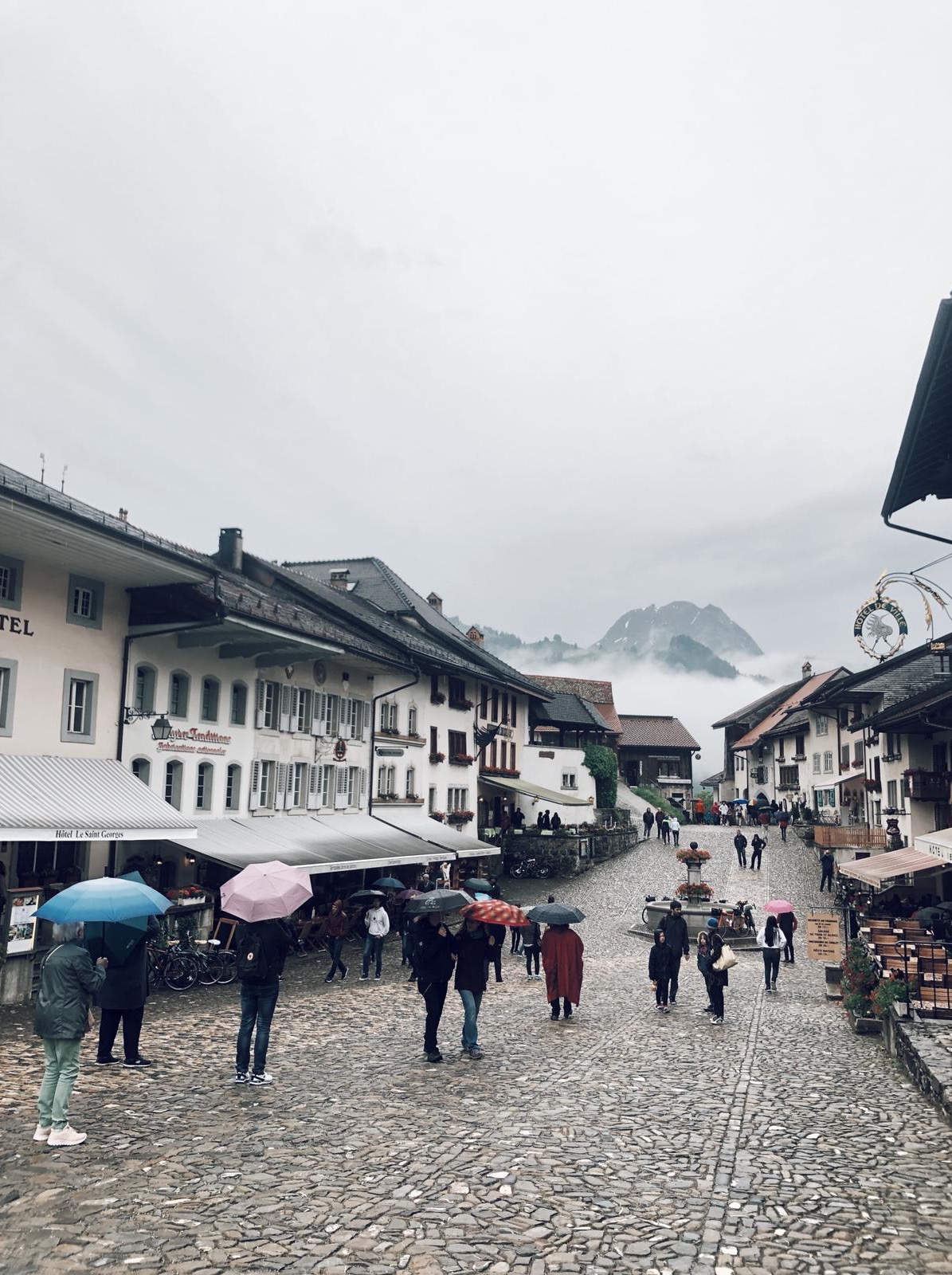 Entre les grosses gouttes on distingue au loin le château de Gruyère aka le deuxième checkpoint de cette BTR. C’est beau et donc forcément, c’est touristique à souhait. Il y a des voitures de partout, il pleut à mort donc avec Arthur on ne s’attarde pas trop et on valide notre passage tant bien que mal sur nos téléphones avec nos doigts détrempés. On se dit que dans quelques heures, tout sera bien plus calme dans l’ascension du Grand Saint Bernard.