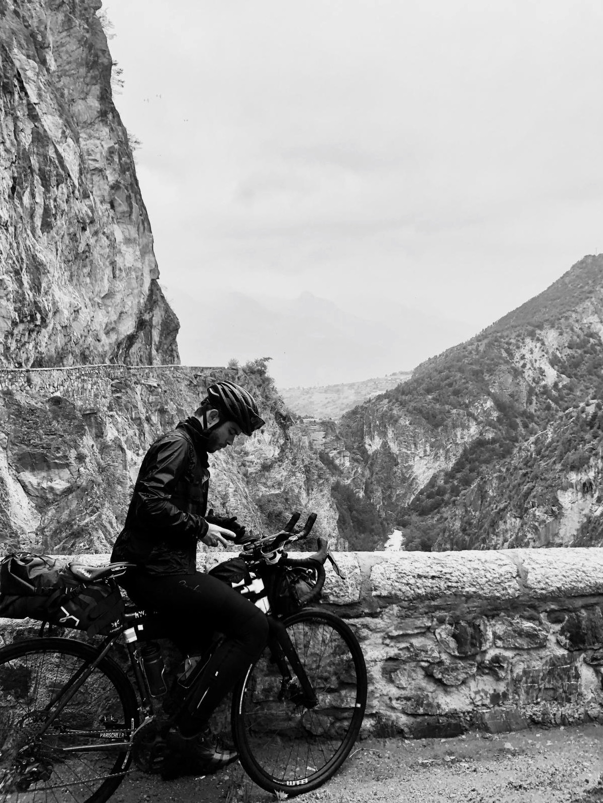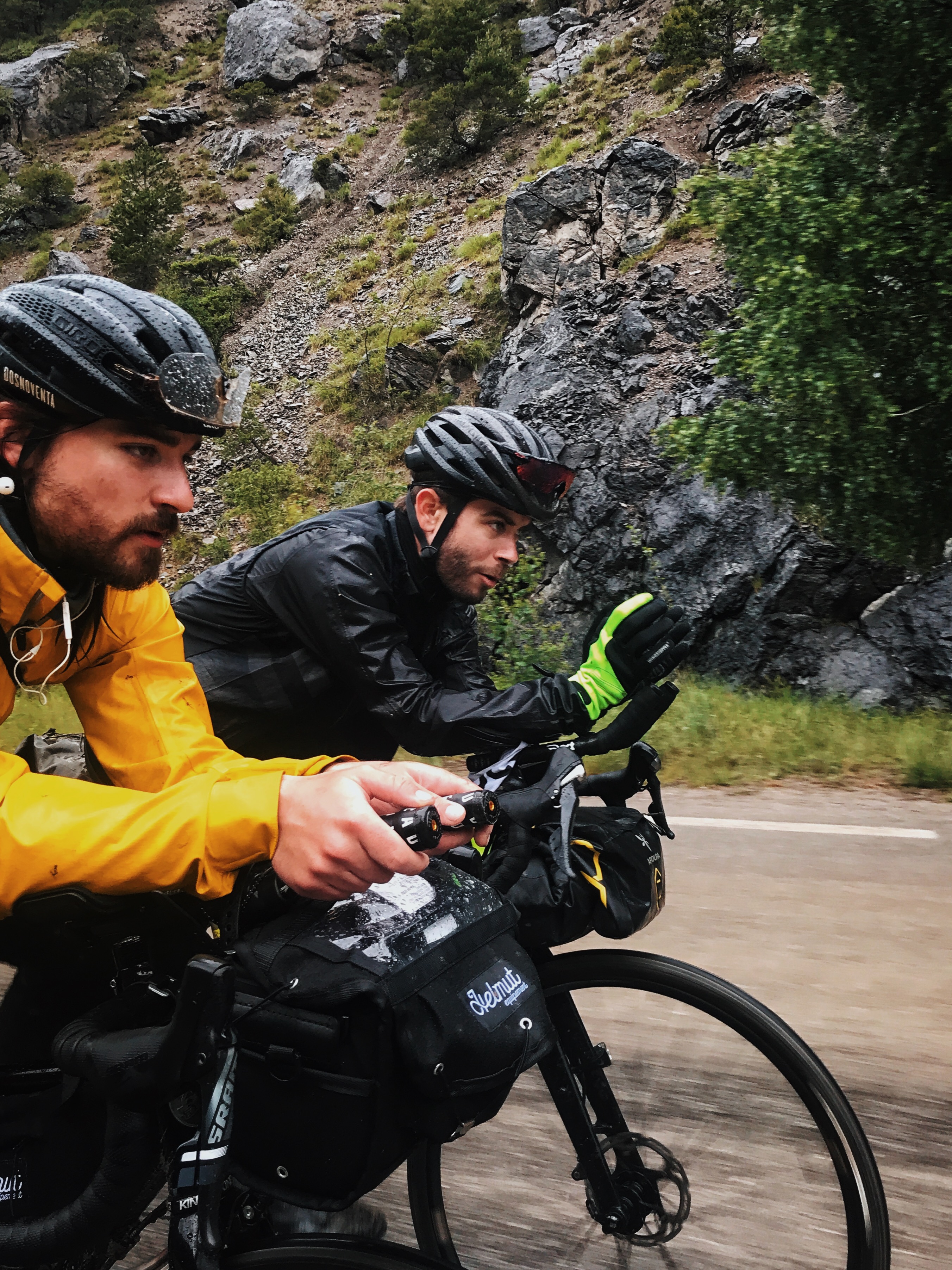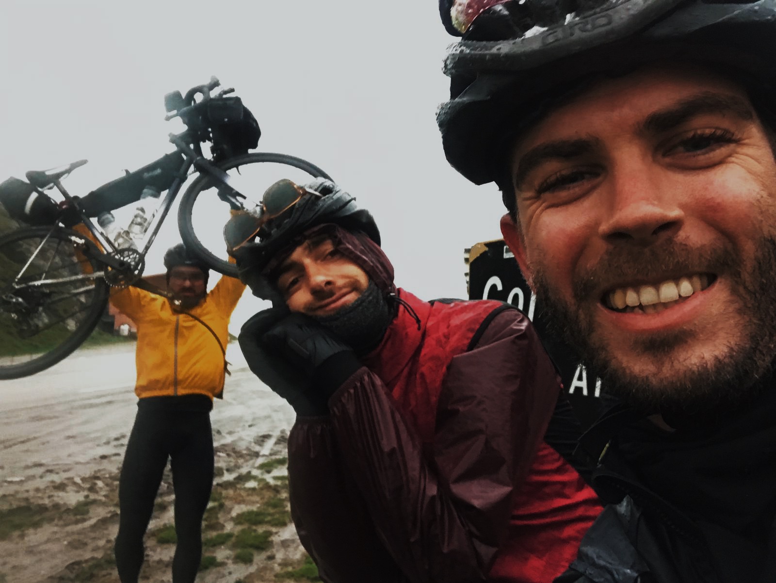 Vent de l’enfer, brouillard avec vision limitée à 2 mètres maximum, températures vraiment négatives et en bonus une grêle très solide pour te victimiser encore un peu plus. Il y a maintenant 30 km de descente. C’est terrible. Nos corps déjà froids se refroidissent et le sol est une rivière. Impossible donc de lâcher les freins. En temps normal, nous ne sommes pas fâché avec tout ce qui est dénivelés négatifs mais là clairement, on ne fait pas les malins, et tans pis pour les plaquettes de freins, on changera tout ça en bas ! On souffle fort pour se donner du courage et rester concentré (comprendre “vivant”), les pieds ne répondent plus, les mains non plus d’ailleurs mais au fil des lacets, on commence à regagner 1°C par ci, puis un autre par là, 300 mètres plus bas. On se réchauffe enfin ! On se regarde tous les trois, sans trop savoir ce qui vient de se passer mais à la première ville c’est sûr, on va prendre un hôtel, et surtout se faire un GROS câlin !
