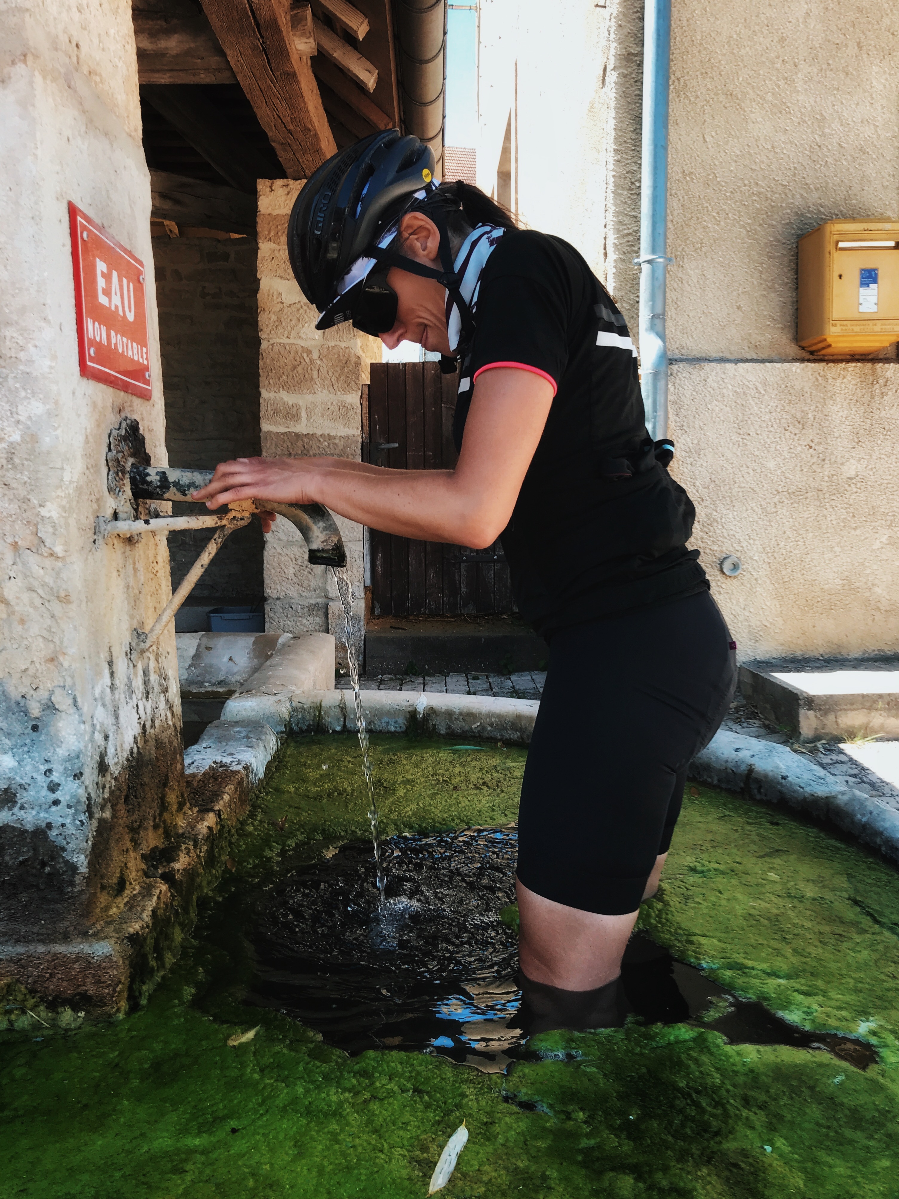 La digestion se fera en groupe. L’après midi on est rattrapé par Élisabeth et quelques bons rouleurs pour un ride prestige jusqu’au CP1 de Besançon. On trouvera même le temps de barboter dans une fontaine comme des castors pour réveiller nos jambes. Puis nous voilà à Besançon.