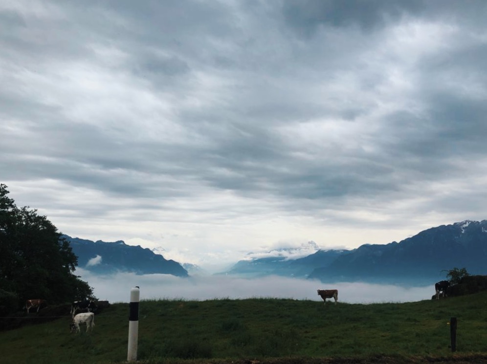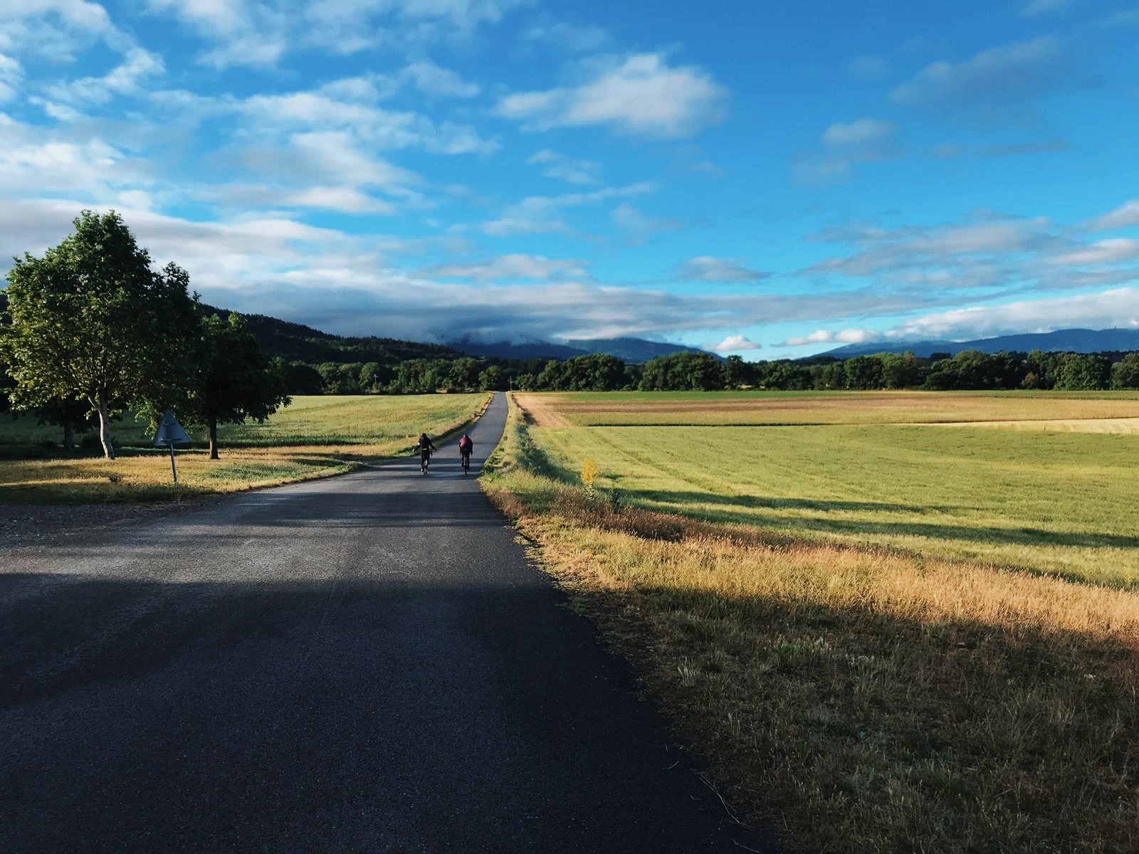 D’ailleurs, qui dit arrivée en Suisse dit aussi arrivée de la pluie. Alors on s’équipe : capuche sous le casque, surchaussures, jambières, on active ce mode « pas swag » le temps de l’averse… Ça restera finalement notre habit de lumière pour les 3 prochains jours. De toutes façons, mouillés pour mouillés, autant pédaler !