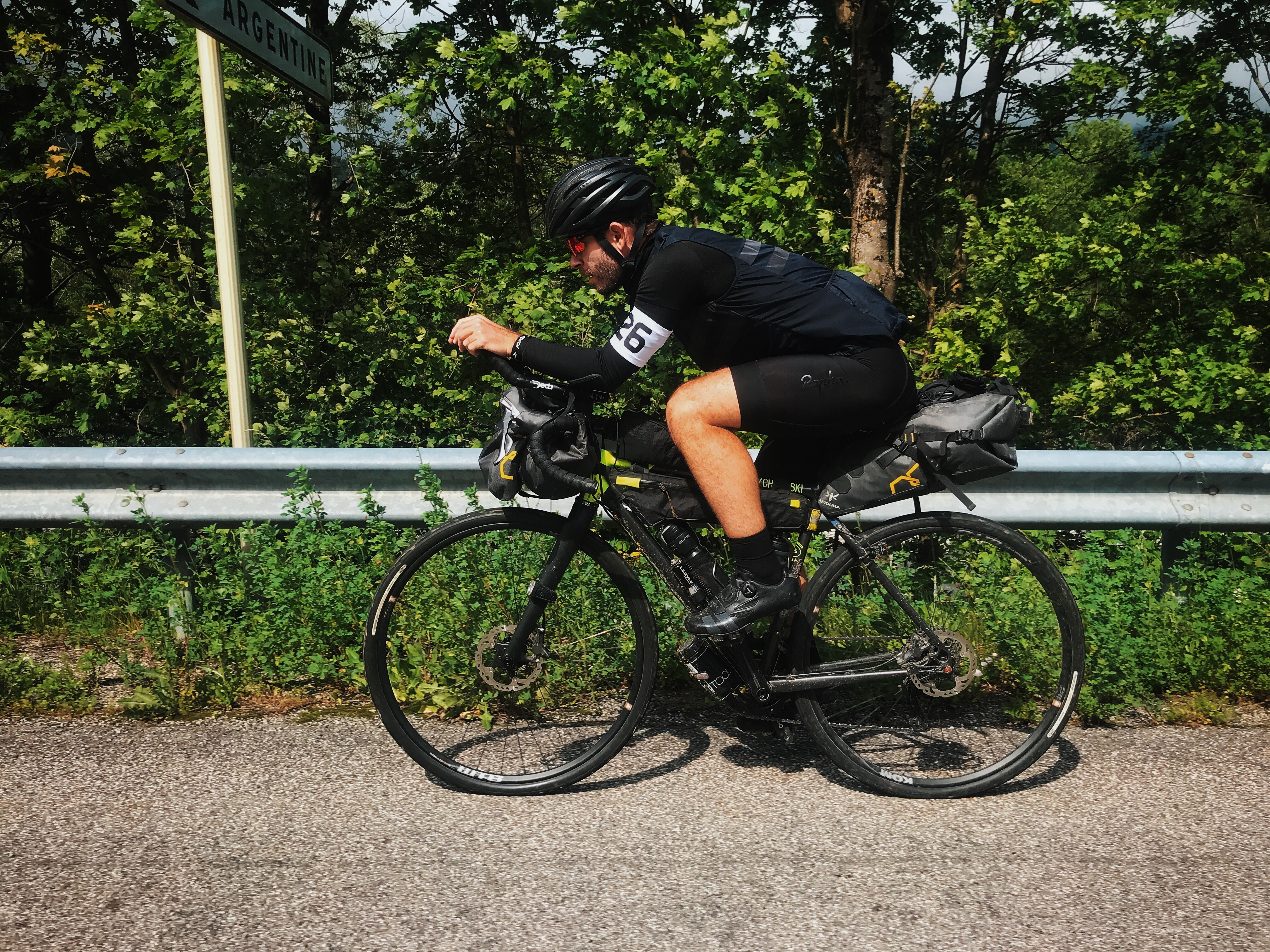 On valide ce 3ème checkpoint après une belle ascension. Photo souvenir et petit déjeuner italien 5 étoiles à côté de l’Abbaye ! On va pas se mentir, après 860 km en vélo tout est délicieux de toutes façons. On laissera nos deux acolytes Sylvain et François dans un café au pied du col de Montgenèvre, juste avant la frontière française.