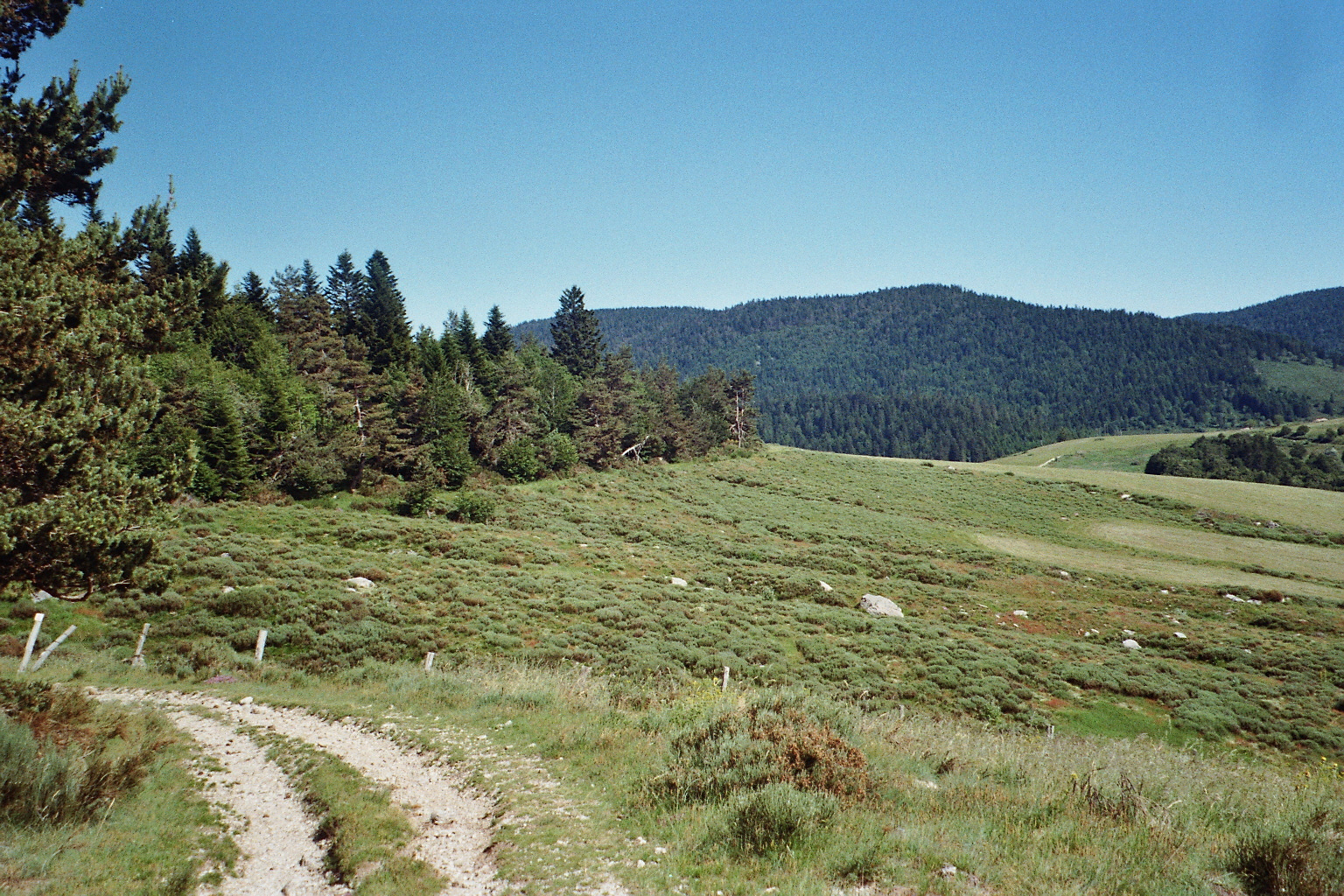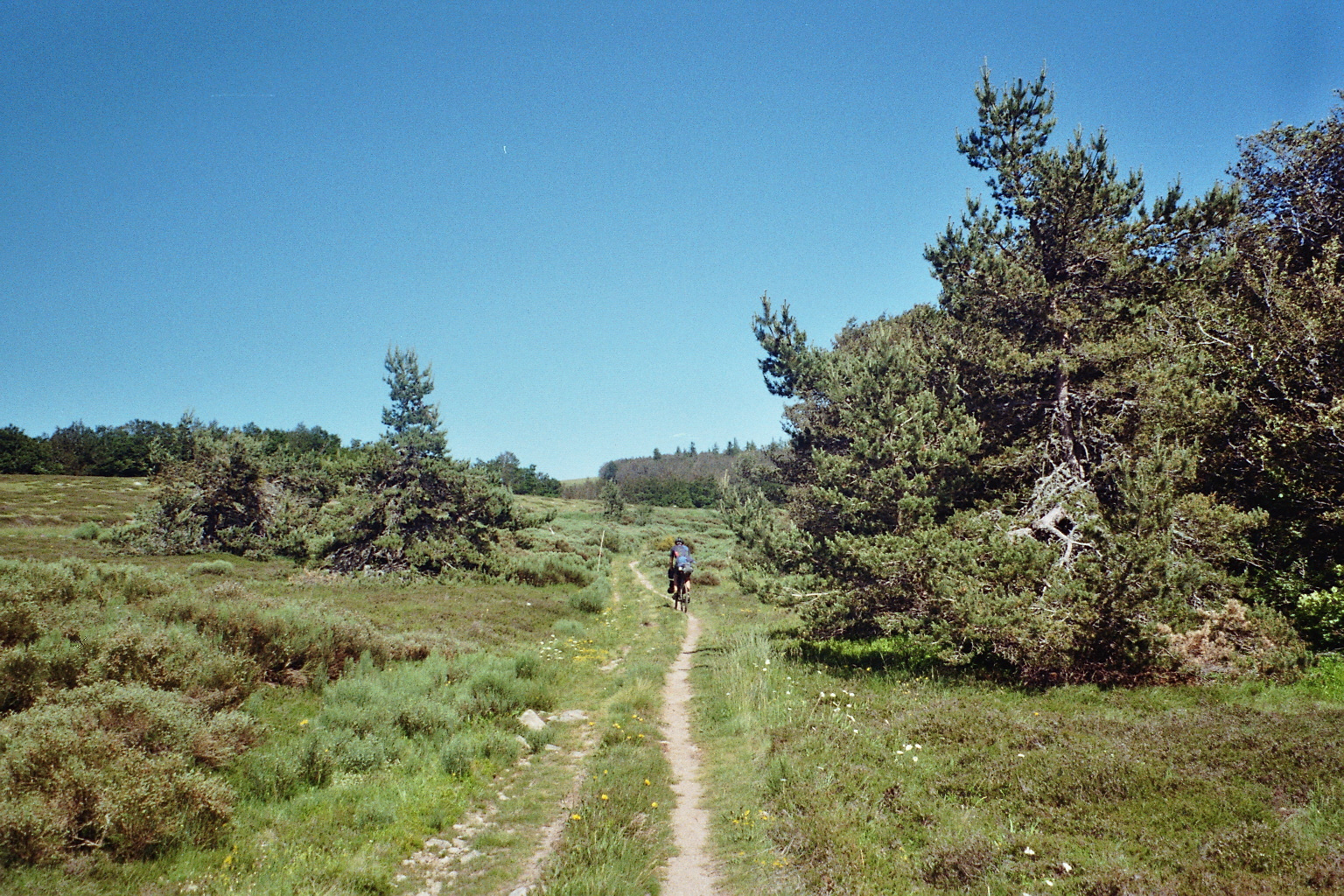 Le balisage est parfait, on se passe presque du GPS. Les premiers monts Ardéchois pointent le bout de leur nez, on y est, et une première baignade. Combo. Camp site 5 étoiles aux Estables avec vue sur le Mont Mézenc. Les paysages évoluent vite, le souffle du vent a une odeur différente, la lumière se transforme, la température monte. La suite est une belle descente vers le sud, l’Ardèche méridionale devient plus complexe, plus sèche, et plus tranchée.