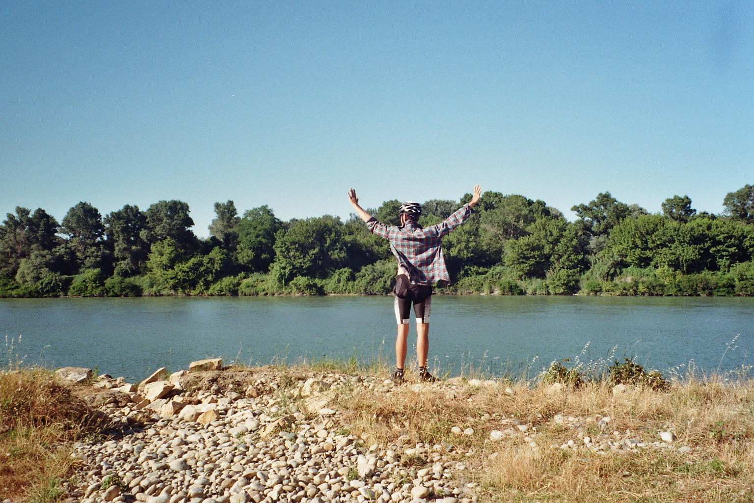 Nous sommes souillés de sueur, l’eau du Rhône est-elle propre ? Surement plus que nous, c’est l’heure du bain accompagné de son utile savon de Marseille. Un troupeau d’une cinquantaine de chèvres débarquent, l’une d’elle renifle le cuissard d’Hugues. Ça doit sentir fort, elle ne l’emmène pas et s’en brosse le nombril avec le pinceau de l’indifférence.