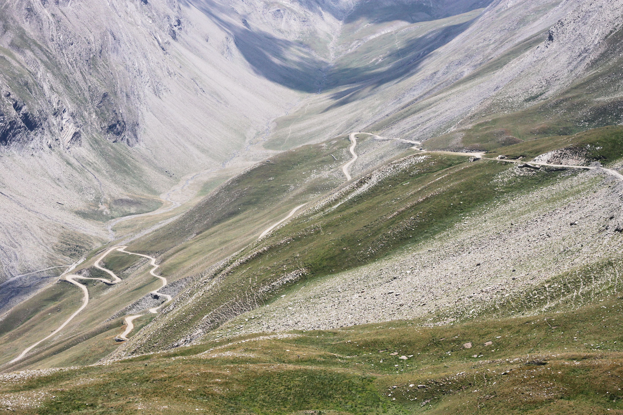 La descente du parpaillon c’est comme un spaghetti géant, on prendra 4500 photos tous les 25 mètres, génial. Ce col est mythique, on a l’impression d’être au Kirghizistan, même si on y est jamais allé, ça a l’air du même acabit. On est bien.