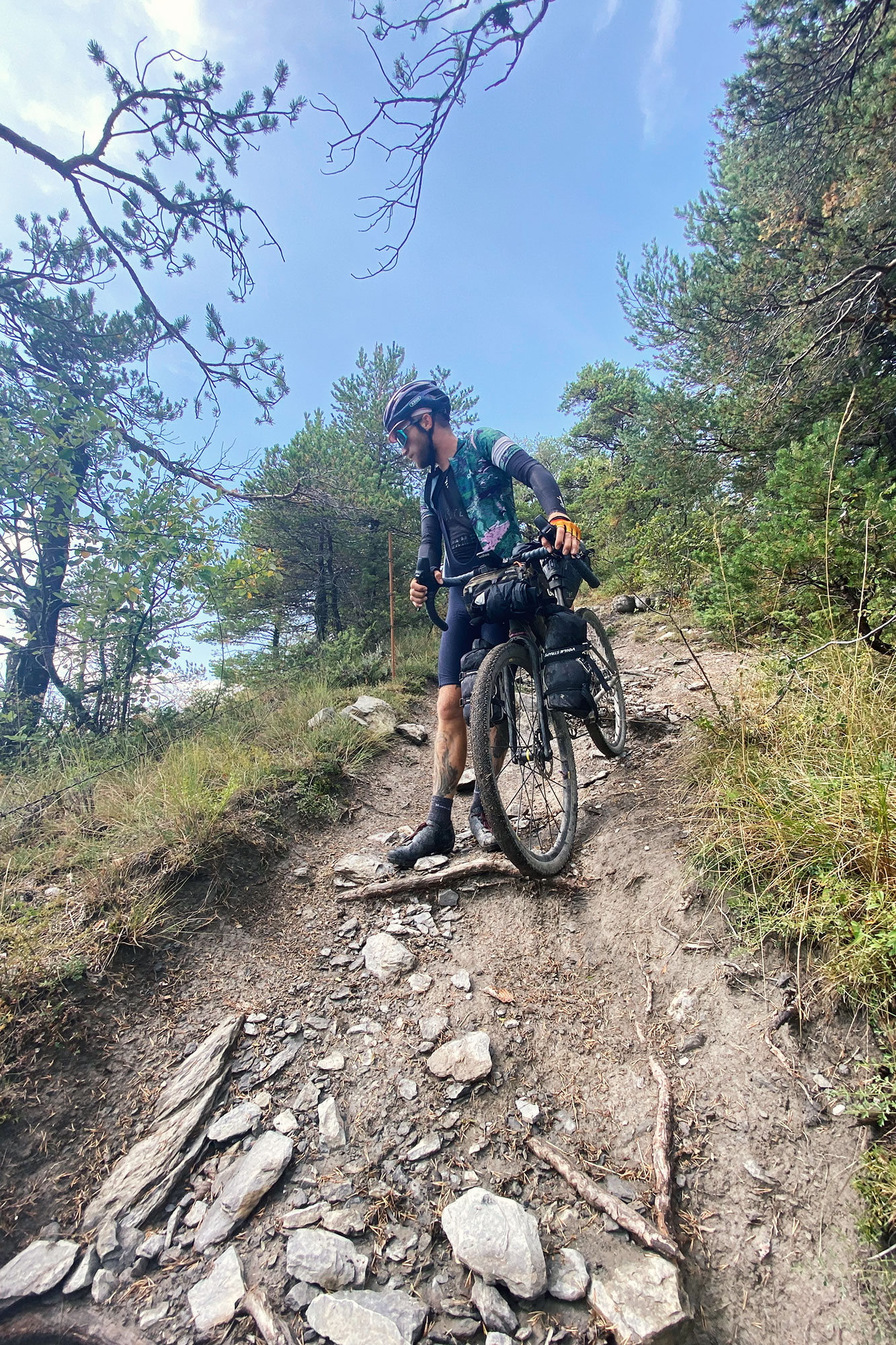 “Ça passe vous croyez ?” La question que l’on s’est posée pas mal de fois durant ce voyage, plusieurs fois par jour. En montée et en descente, on peut vite perdre 3 heures (et 2 chevilles) à pousser dans un enfer de pierres coupantes, ou glissantes, au choix. Complètement sacochés, nos vélos ne sont pas des plus maniables. On va pas se mentir. On ne peut pas savoir en face d’un singletrack si on va se régaler ou en chier.