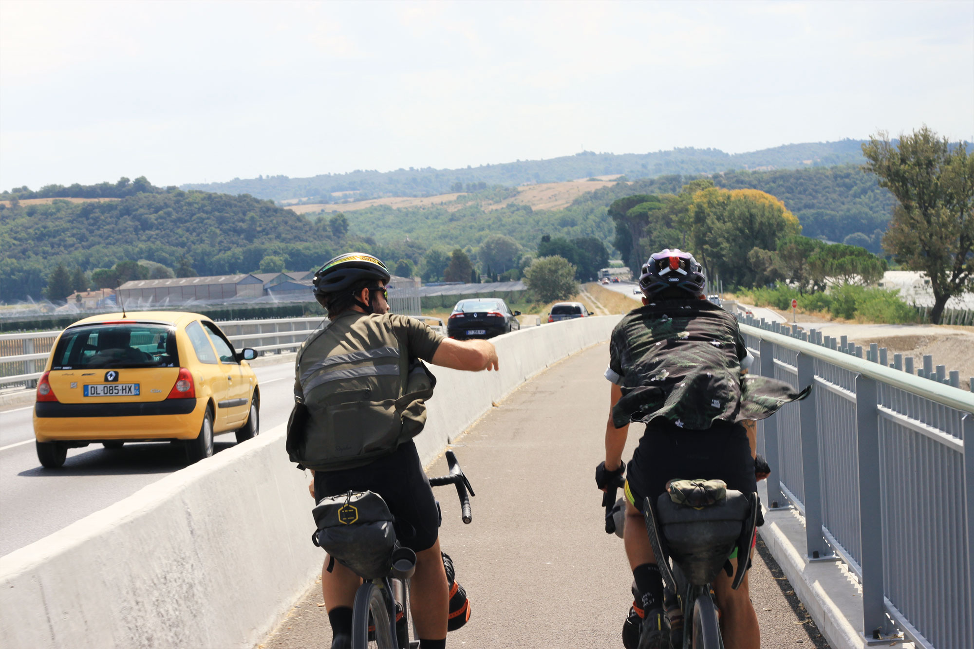 On commence à avoir fait pas mal de traversées. Le Morvan, le Jura, les Vosges, l’Ardèche… Et comme d’habitude c’est super bien balisé, super bien desservi en terme de villages, de terrasses… On est bien. On vous avouera, en toute amitié, qu’on a parfois coupé la map. On apprend de nos erreurs et s’engager chargés dans un chemin impraticable à 25% sur 2 km, ça rebute. Par contre on aura toujours trouvé des alternatives coquino-porno-swag.