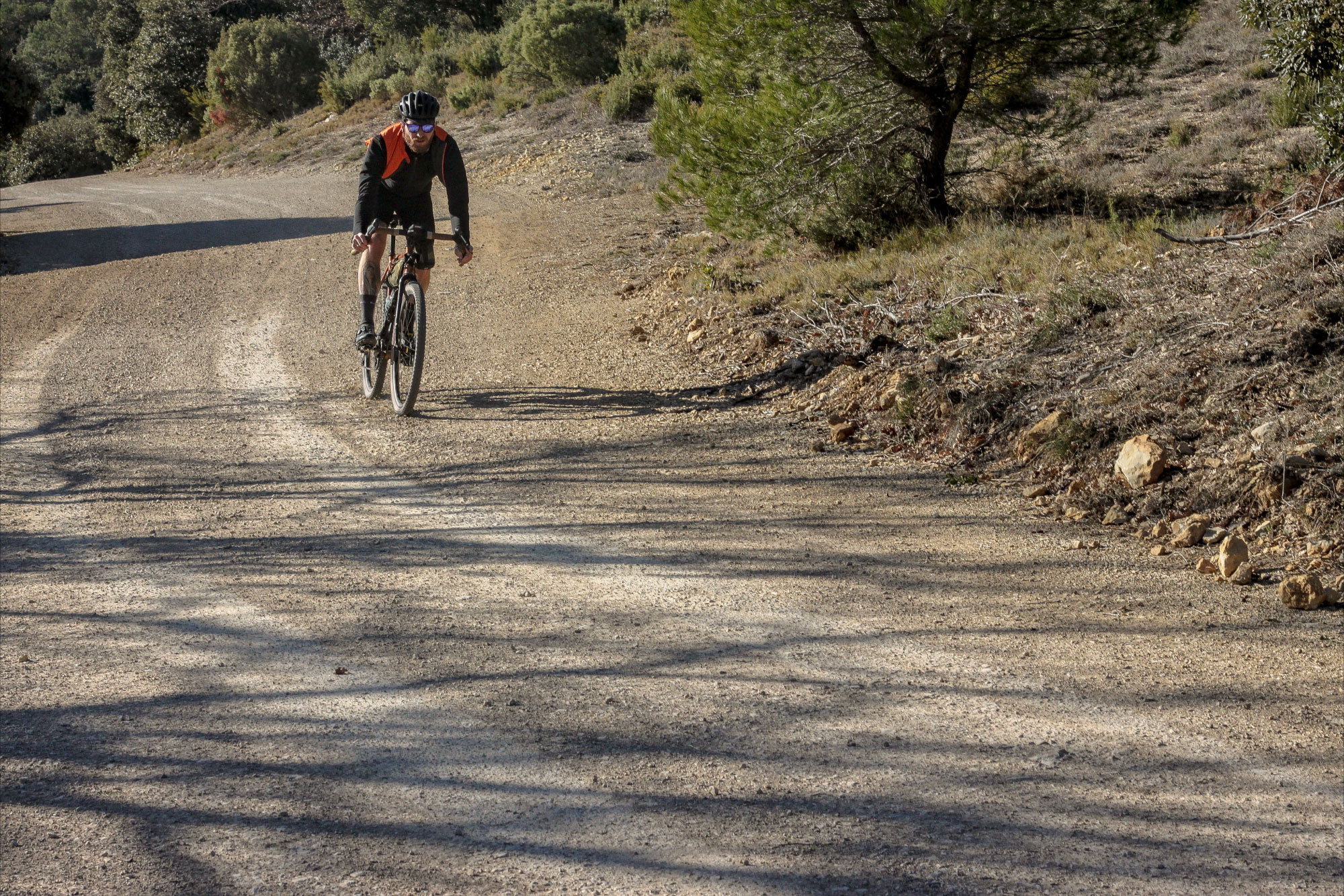 Mais pourquoi diable mettre des gros pneus sur un gravel ? Tout simplement parce qu’il n’y a pas besoin d’avoir un BAC+5 pour comprendre que si on multiplie la taille d’un pneu, on multiplie aussi le facteur fun.