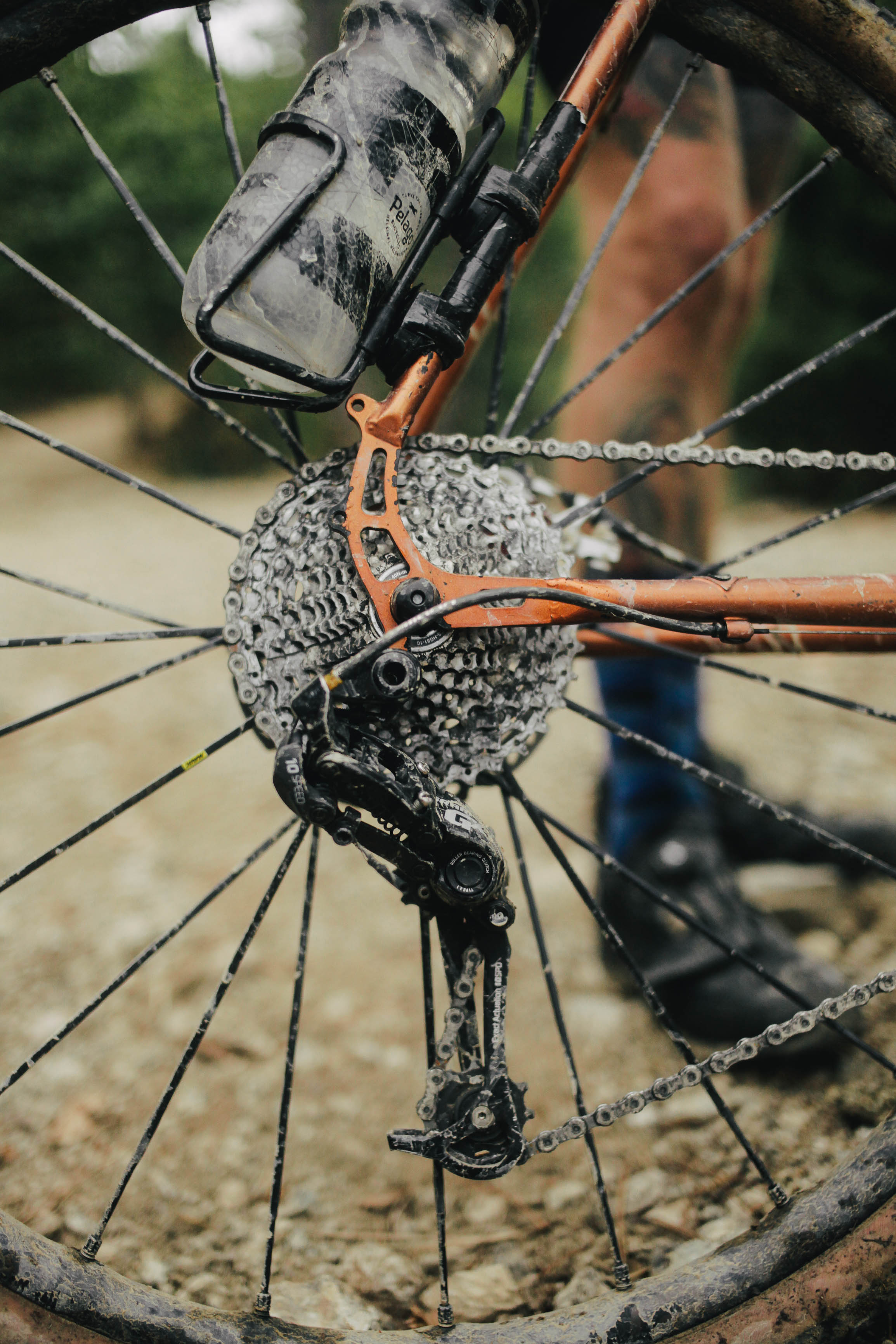 En ce qui concerne les composants, j’ai opté pour ce que je qualifie de “simple et efficace”. Sram à l’époque du 10V permettait de mixer facilement les composants route et VTT. Du coup j’ai rapidement remplacé le pédalier et dérailleur arrière Force par du GX. Alternative peu onéreuse face au Force CX1 permettant de garder un double plateau. Il m’arrive de remettre le pédalier Force compact en 50/34 pour des épreuves de route plus ou moins longues.