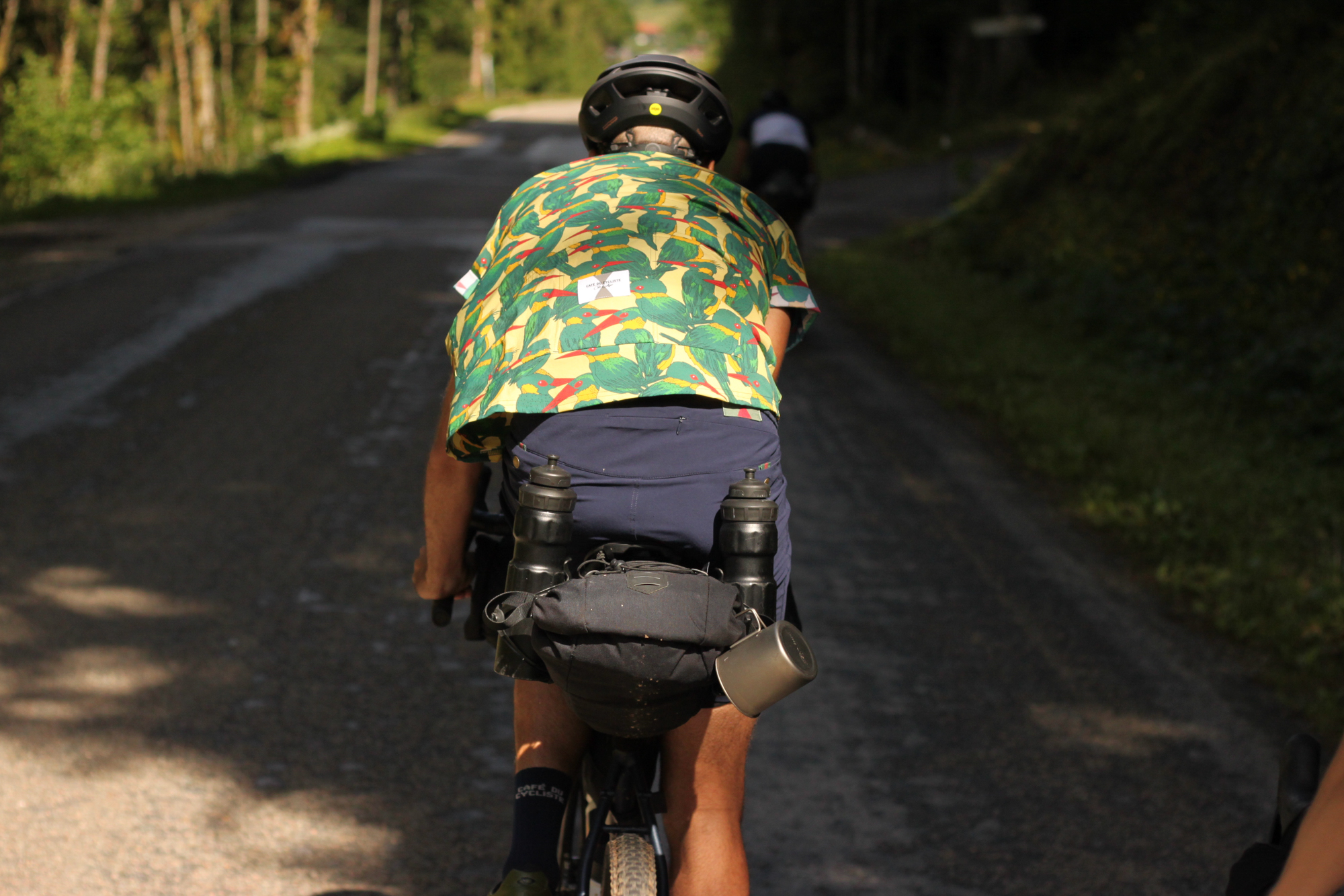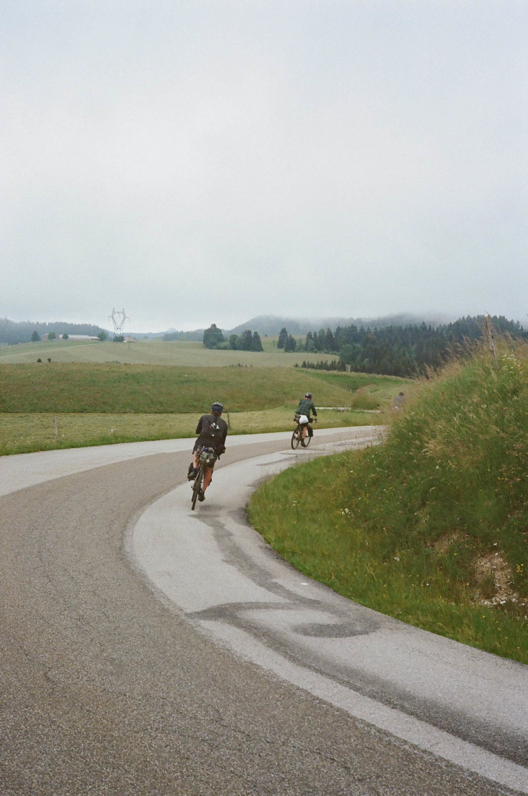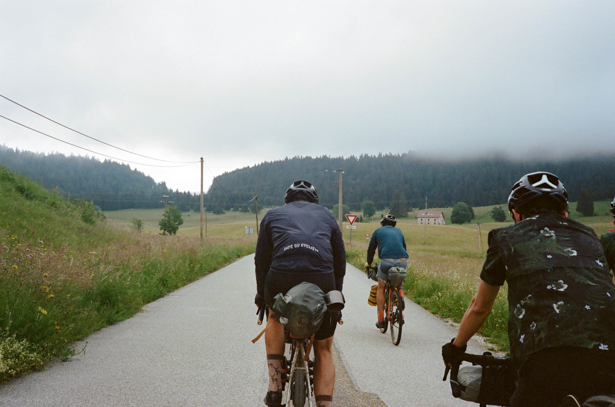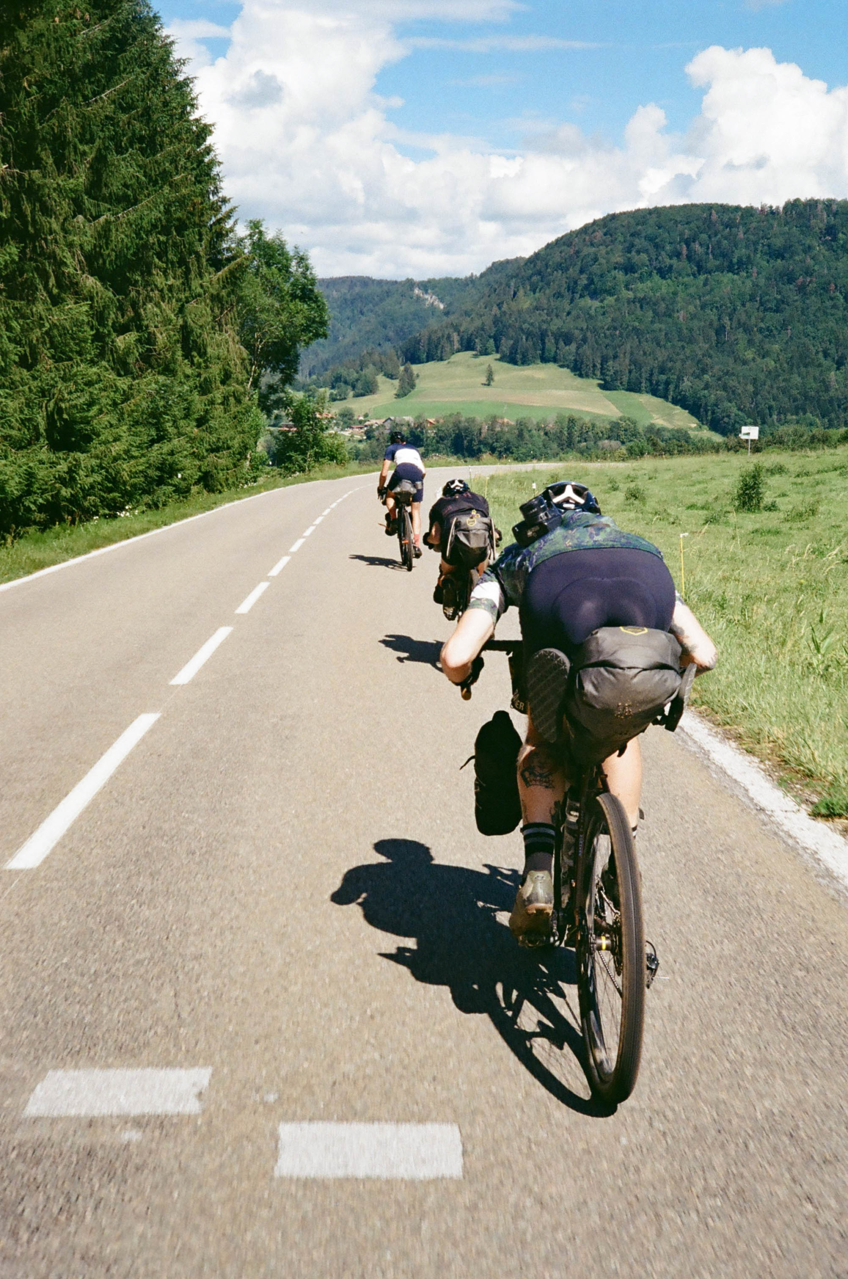 Dans le Jura, les mecs qui ont fait les routes, ils ont dû faire un complexe d’infériorité avec les mecs qui font les routes dans les Alpes. Comme les routes sont moins longues, ils ont dû se dire “vas-y, on va taper des pentes de malade pour montrer qu’on est fort nous aussi”. Du coup quand t’es à vélo et que t’as 15kg de sacoches, bah tu galères… Heureusement, c’est jamais bien long !