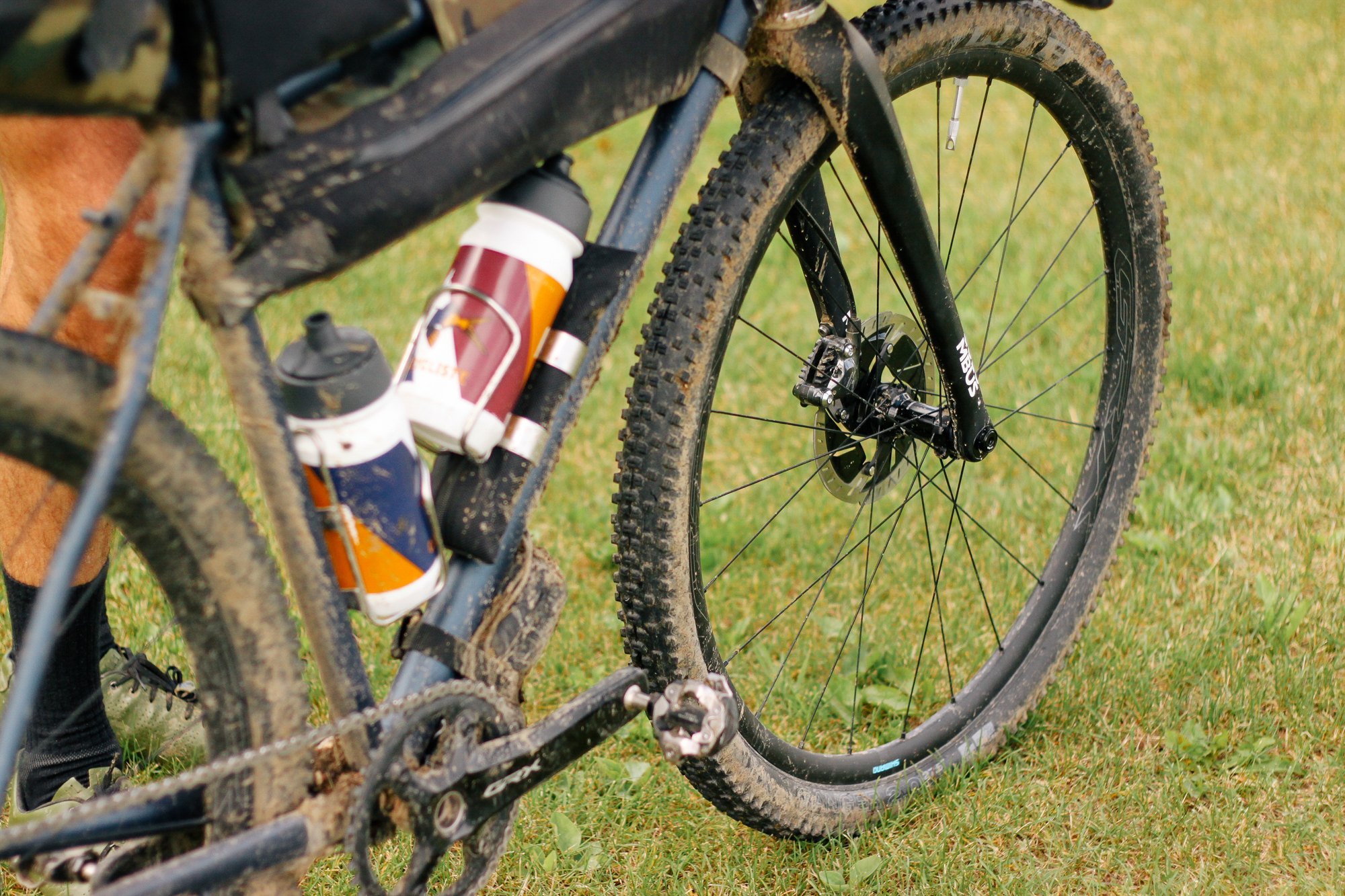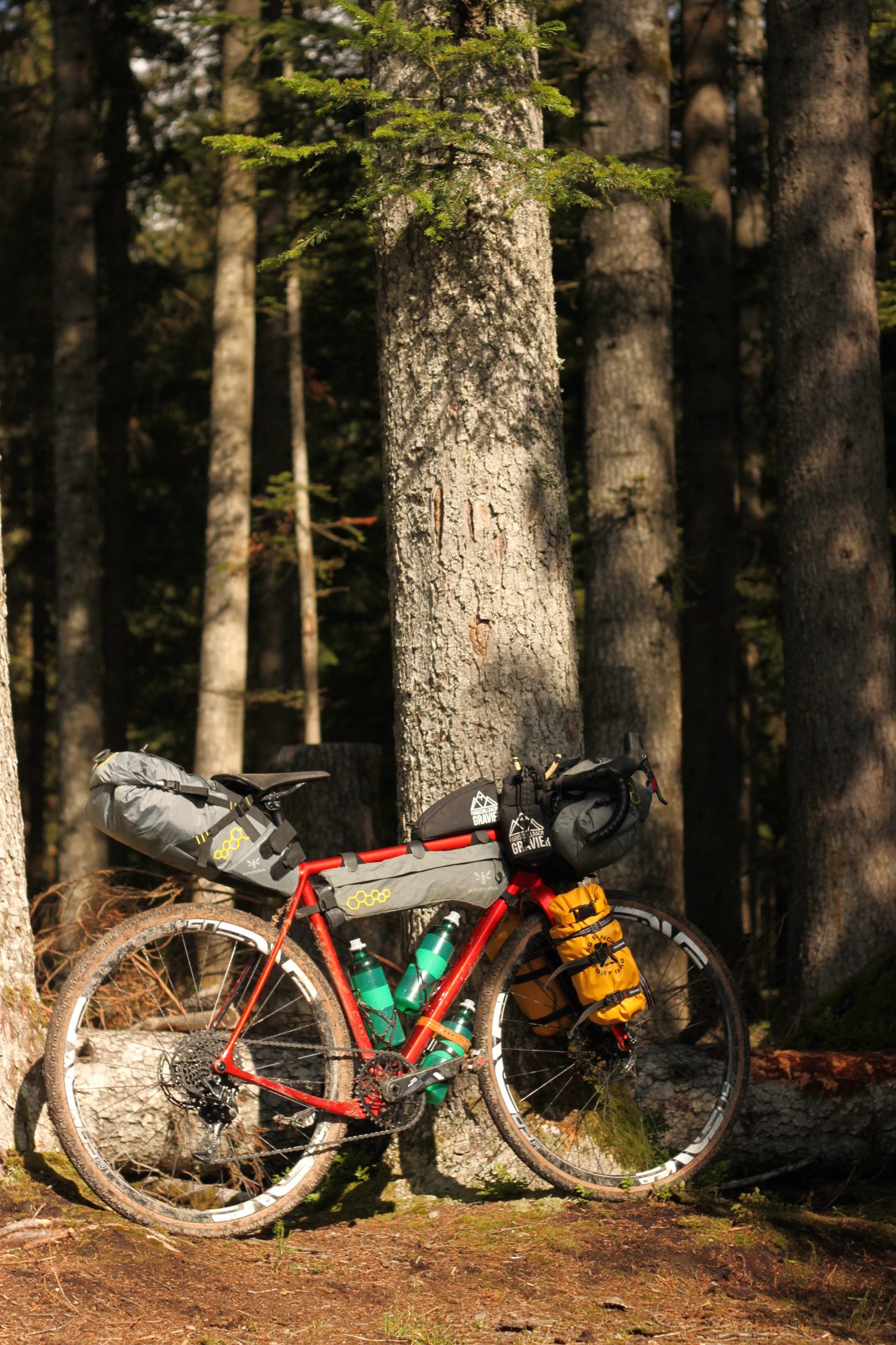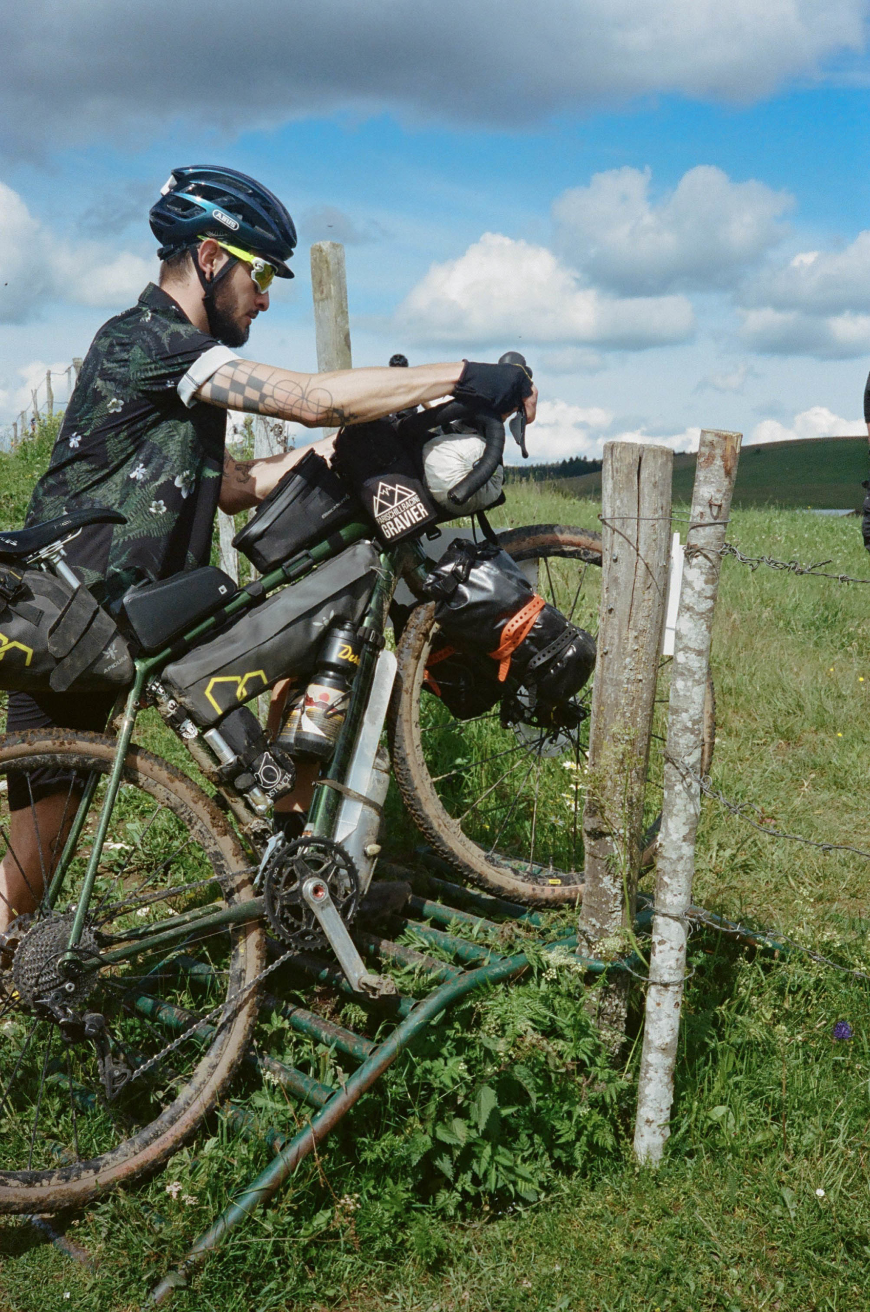 Ce voyage est l’occasion pour Simon de sortir sa rutilante nouvelle monture. Un cadre « DISTANCE » ( manifestement conçu pour parcourir de nombreux kilomètres, sinon ils auraient appelé ça les cadres « TERRASSE » ) équipé dernier cri en full Shimano GRX hydro Di2 comme les coureurs du Tour de France et les influenceurs qui font semblant de faire du bikepacking avec du plastic-bulle dans les sacoches…