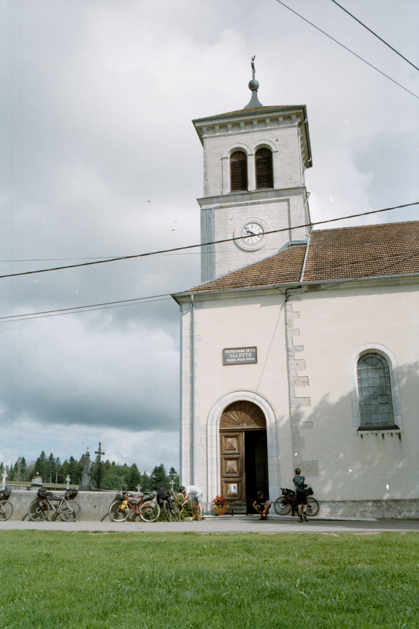 On profite de la journée pour perdre du temps en terrasse, à manger du croque monsieur pour réparer la seule et unique crevaison du voyage et pour franchir les derniers passages de pâturages.