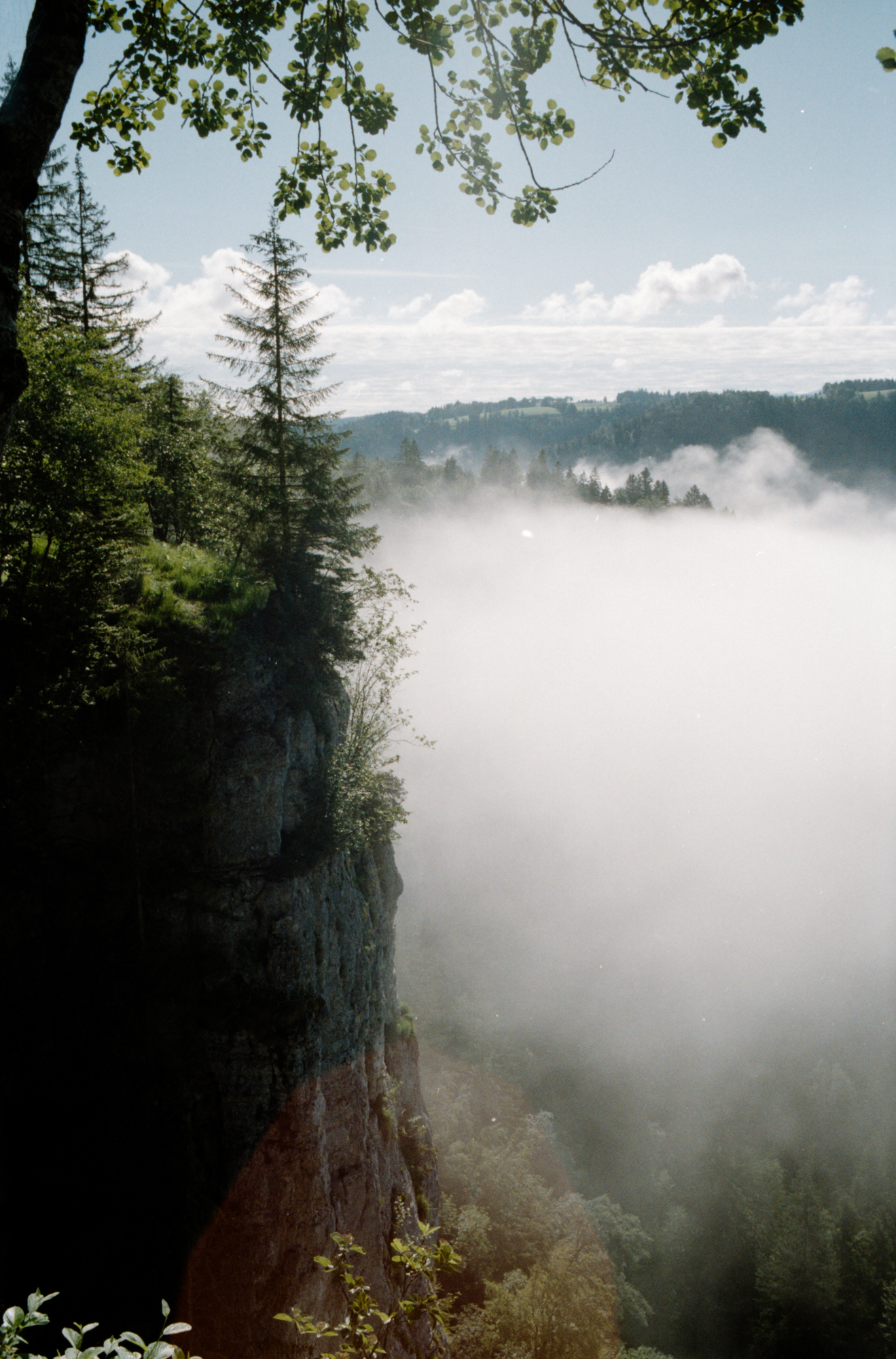 On se cogne donc les 40 premiers kilomètres en lombric à 35 sous des trombes d’eau qui seront les seules du voyage. Nos yeux sont rivés sur le radar de pluie pour s’abriter à la moindre averse. On a recensé grâce au site excellent refuges.info, les abris de rando sur notre parcours. Et dans le Jura, il y en a pas mal !