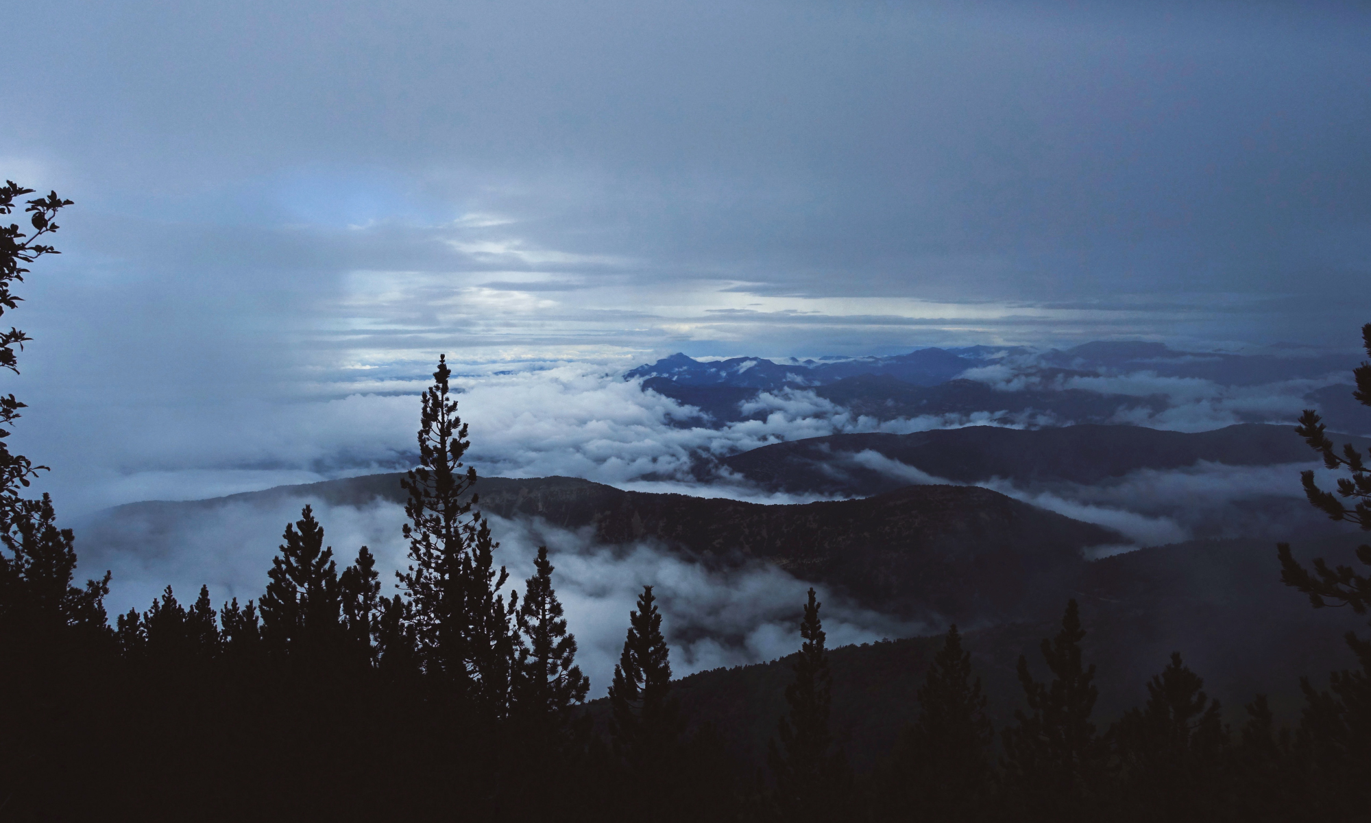 De temps en temps nous apercevons le sommet entre la brume et les montagnes. C’est pas idiot à regarder mais on commence à sentir que la vue panoramique qui doit nous attendre au sommet ne sera peut être pas au rendez-vous. Bien vu l’aveugle, on voit à peine à 30 mètres !