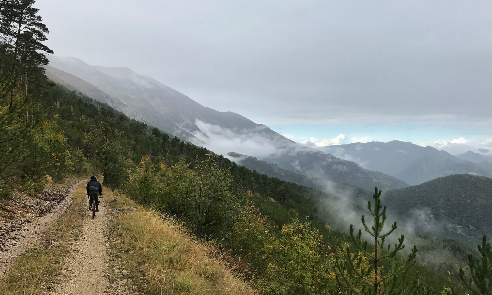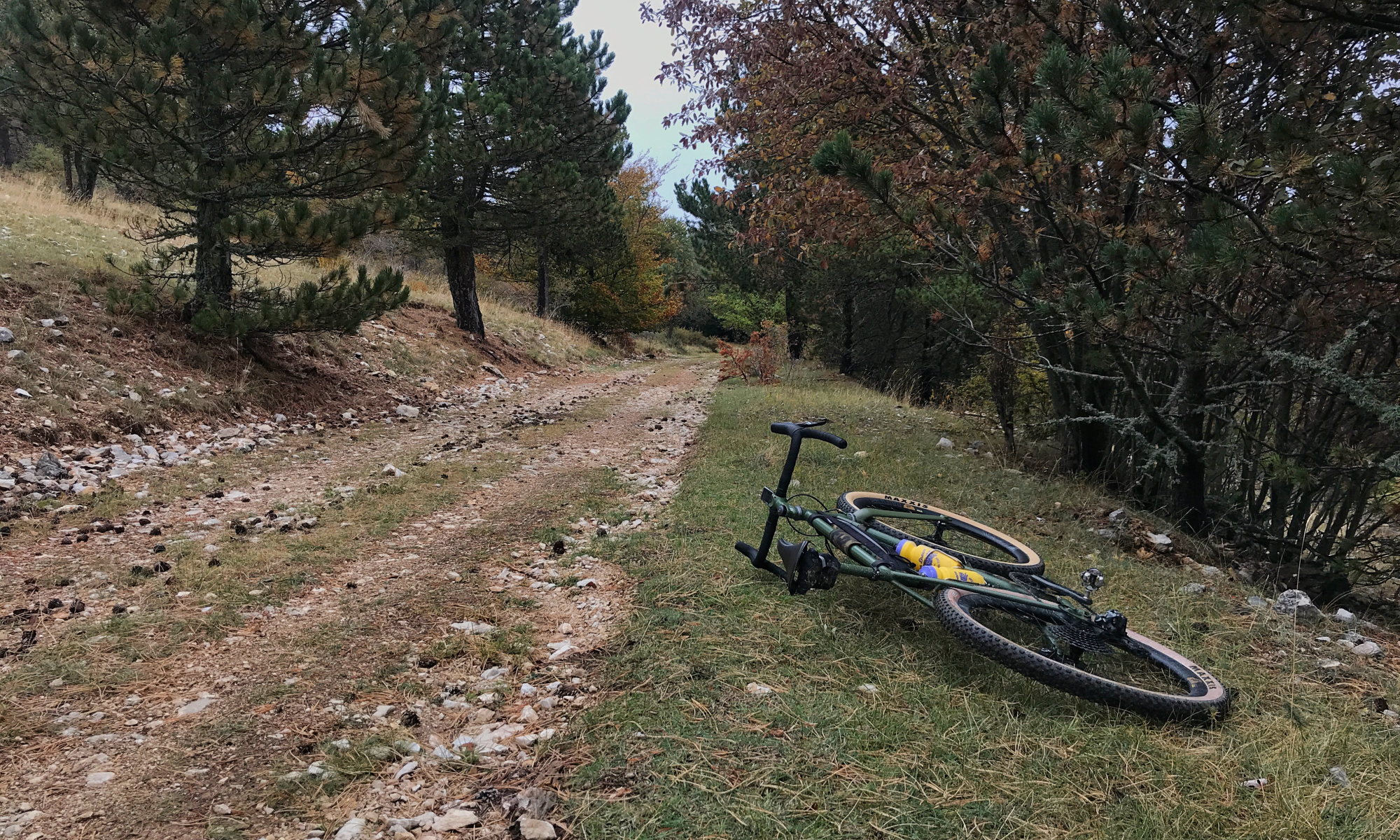 La Piste du Bâtiment nous amène ensuite au Chalet Reinard pour un classique café/jambon beurre et on file pour la suite. Le reste de la journée sera tout aussi humide et froid mais les descentes et les pistes empruntées en valent largement la peine. De la petite route abandonnée à la DFCI où on ne roule pas plus vite qu’à balle, la variété des terrains de jeux qu’offre le Ventoux hors des routes est incroyable.