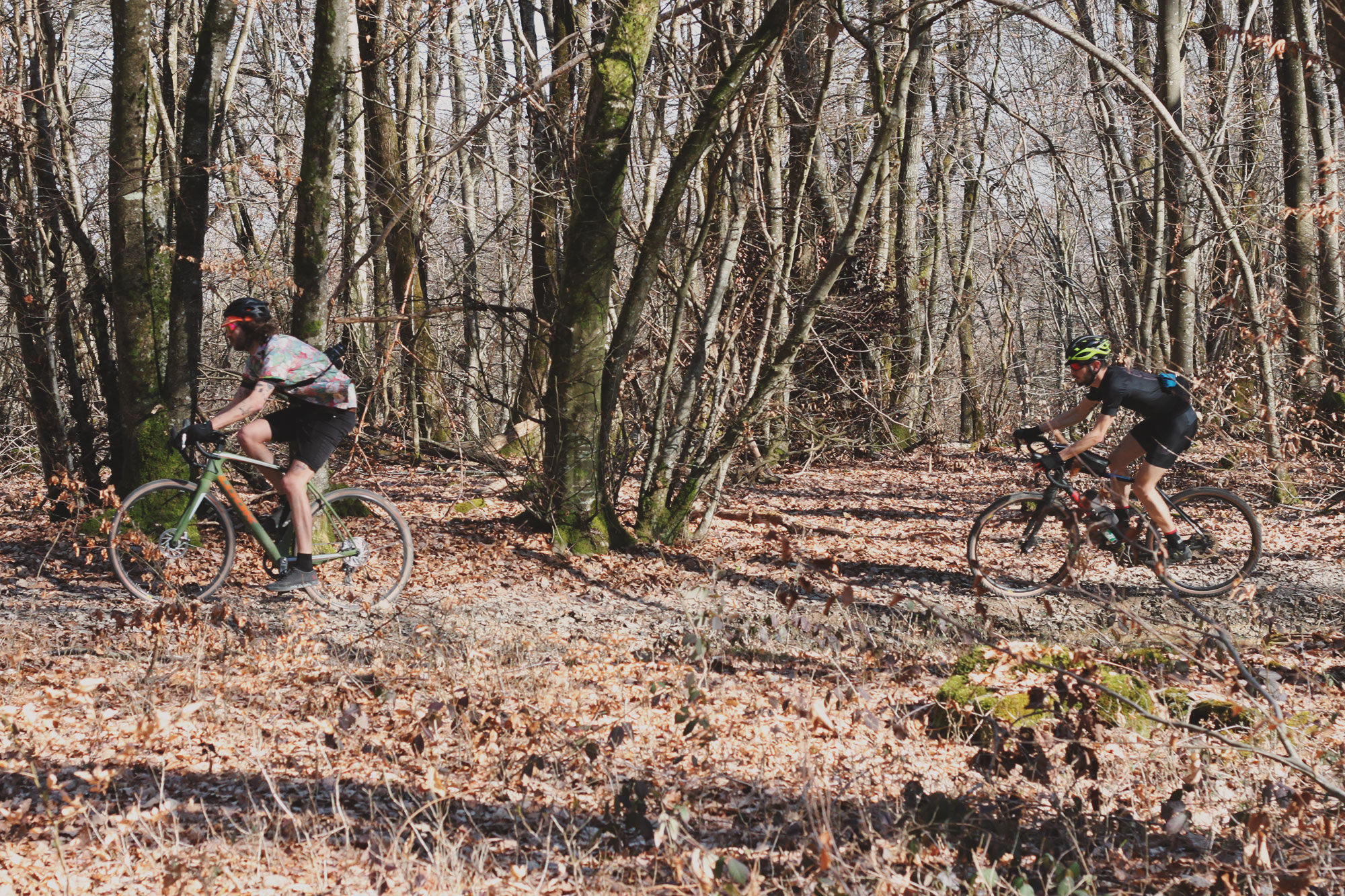 Découverte du gravel pour Antho qui pour l’occasion roule la pointe de la technologie carbone du constructeur local. Les sensations sont là, le loisir aussi. Pause ravito obligatoire dans un PMU du cru. C’est l’été en février, on ride en manche courte (ça nous change des -2°c de la veille au matin sur le tournage, merci la post prod pour la retouche des lèvres bleues !), le micro climat nivernais à ce qu’il paraît.