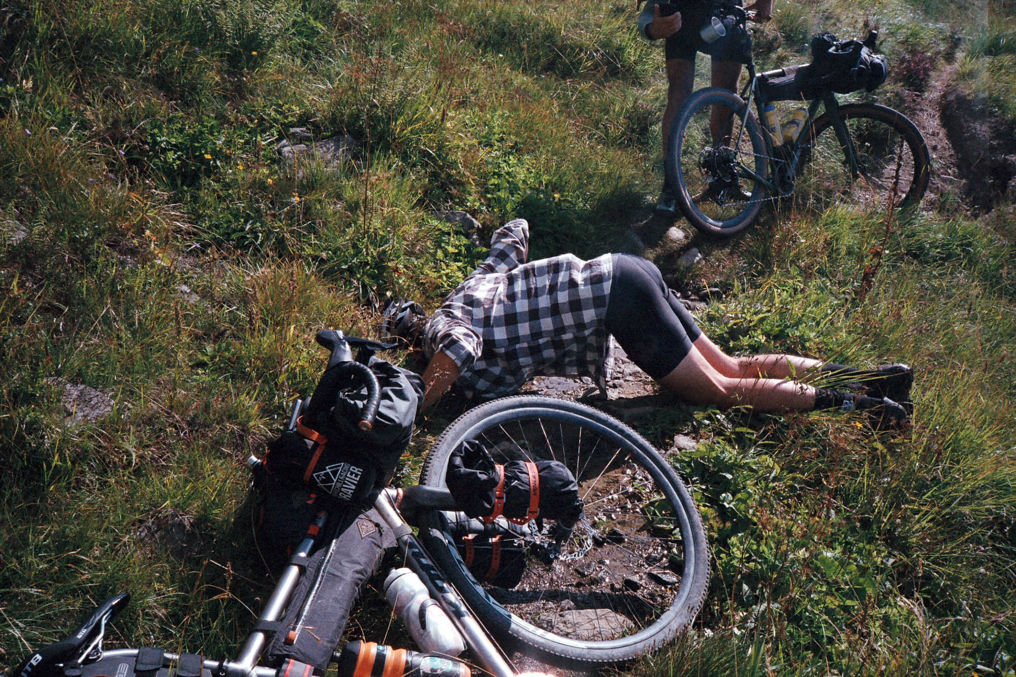 La palme revient tout de même à Louis. Incontestablement le plus athlétique du groupe, il roule bien souvent en tête, et il n’est pas rare qu’il oublie de regarder les virages sur son GPS, et qu’il rate une intersection en pleine descente lancé à 70 km/h. Il sera également le blessé du voyage. Une chute dans un virage lancé à pleine vitesse lui vaudra une belle pizza sur la cuisse droite, et une vilaine chute à l’arrêt dans le dévers suite à une bête perte d’équilibre se soldera par une légère entorse. Elle ne l’empêchera pas de pédaler, mais réduira au strict minimum ses capacités de portage et de marche dans les secteurs graviers les plus engagés.